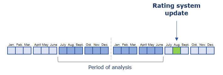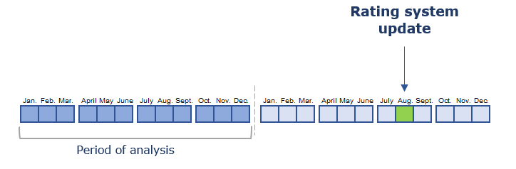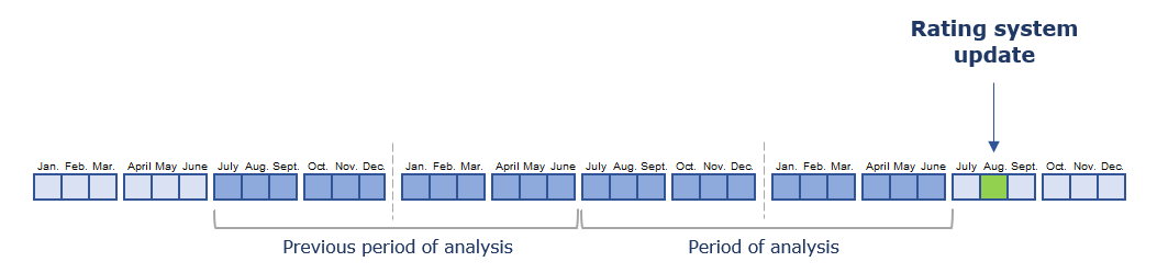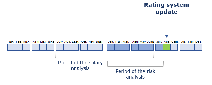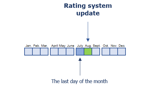 - the possibility of starting to improve own rating already in the upcoming month — rating data are updated every month, moving the period of analysis for one month forward;