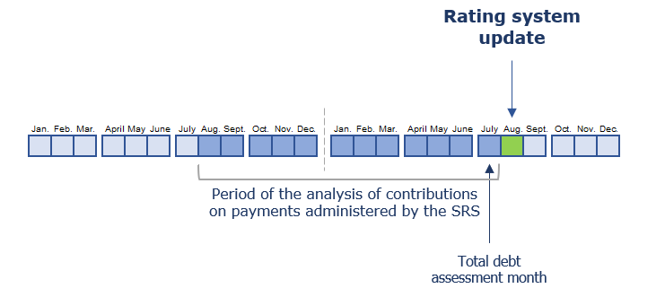 ! ATTENTION: Due to the impact of COVID-19 on the macroeconomic situation, from March 24, 2020 the indicator "Changes in the average monthly wage" is not available in the taxpayer rating system and from April 24, 2020 the indicator "Changes in the total debt of payments administered by the SRS” is not available.