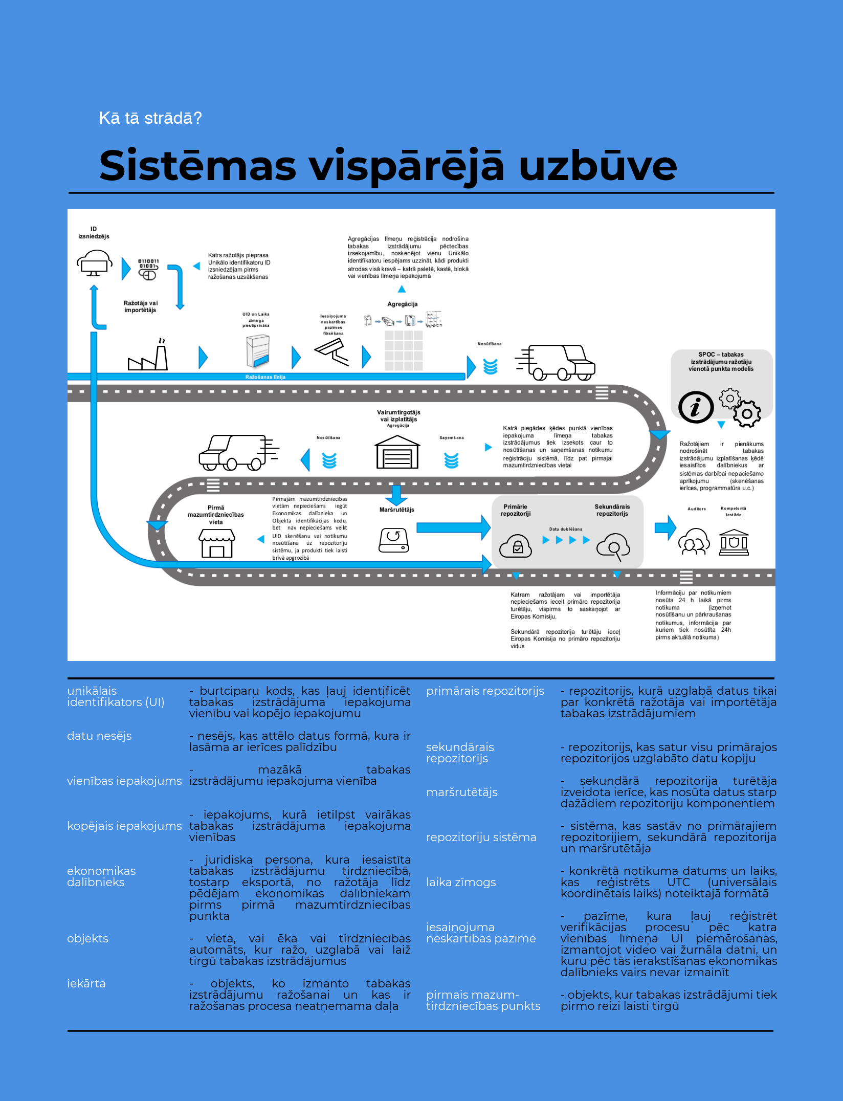Tabakas izstrādājumu izsekojamības sistēma (Track&Trace) tiek ieviesta 2019.gada 20.maijā vienlaikus visās Eiropas Savienības dalībvalstīs, tai skaitā Latvijā, attiecībā uz cigaretēm un tinamo tabaku.